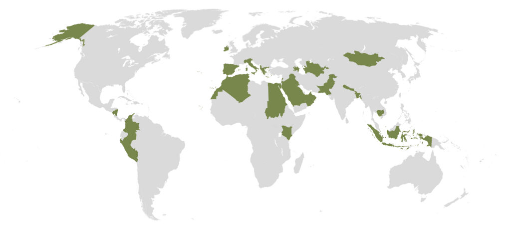 Les sites concernés appartiennent à des régions très diverses, entre Europe, Asie, Amérique et Afrique, et se rattachent à des cultures et périodes elles aussi très variées.