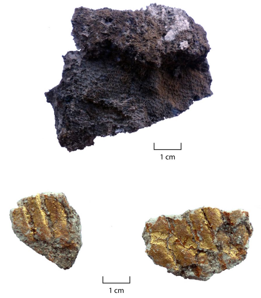 L’étude archéothanatologique des sépultures a révélé des indices de momification (traces de tissus, de plâtre et de feuilles d’or) et des anomalies de position des ossements suggérant des prélèvements (pillages). Un aménagement inédit a aussi été observé dans une des sépultures : un plat profond en céramique Fine Rouge romaine placé derrière la tête du défunt, créant une sorte de nimbe ou d’auréole protectrice.