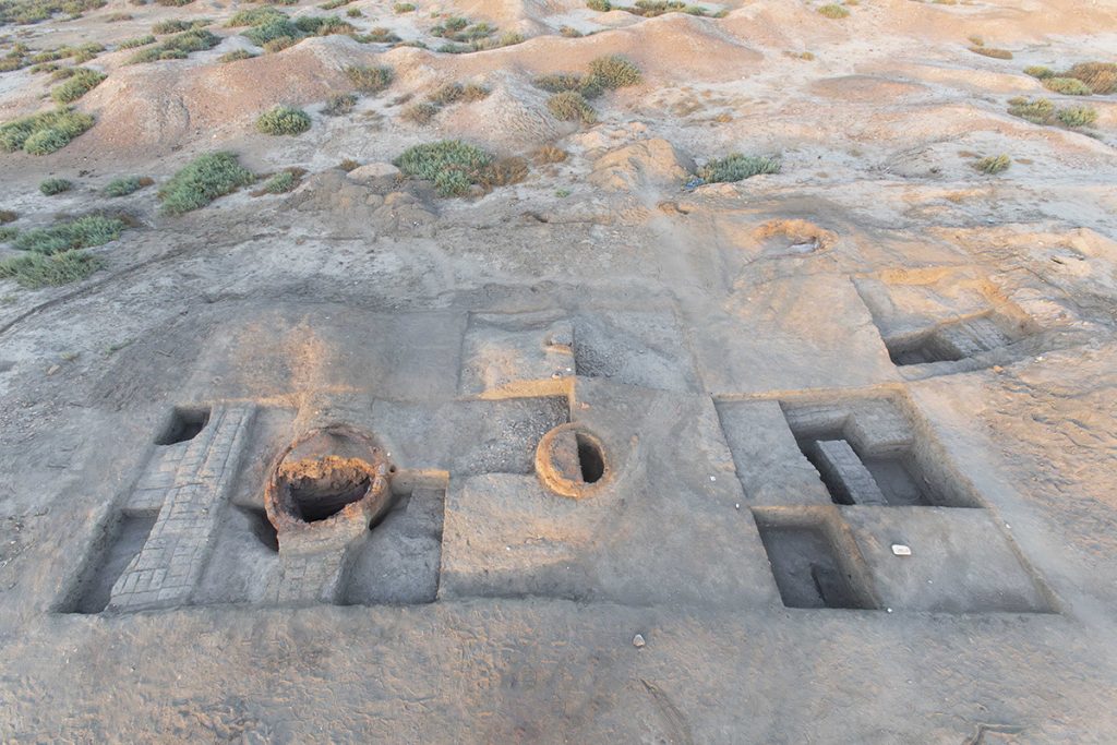 L’étude stratigraphique a révélé que les ateliers de potiers du Haut-Empire (milieu Ier – début IIe siècle apr. J.-C.) ont été implantés sur des vestiges d’habitat de la Basse Époque et de l’époque ptolémaïque. Les larges murs en briques crues datant de la Basse Époque ont servi de fondation pour les fours, assurant stabilité et solidité aux structures de cuisson.